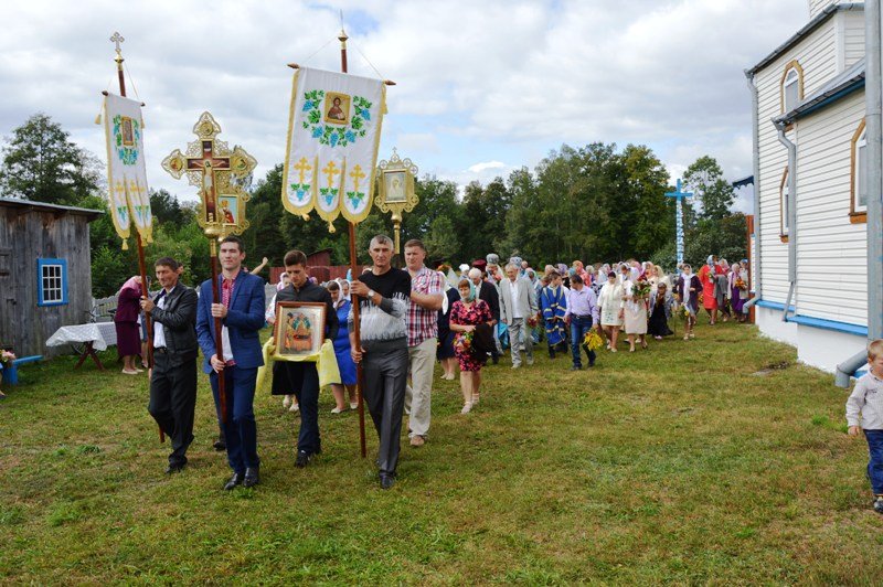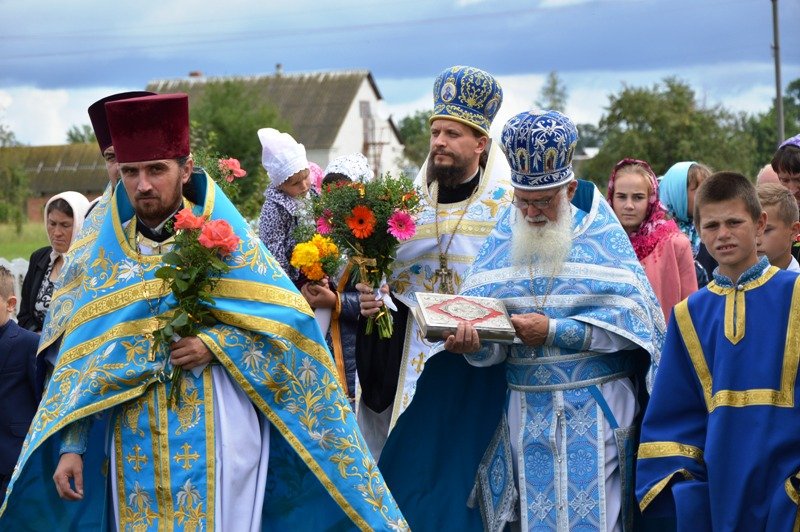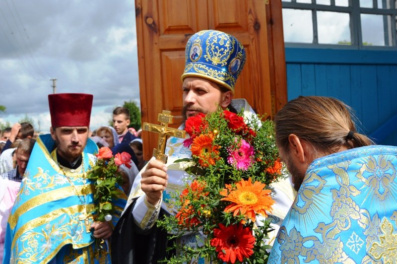 Після хресного ходу навколо храму отець благочинний освятив принесене прихожанами зілля, виголосив змістовну чудову промову щодо походження свята Успіння Пресвятої Богородиці та привітав теклівчан з 25 літнім ювілеєм храму.