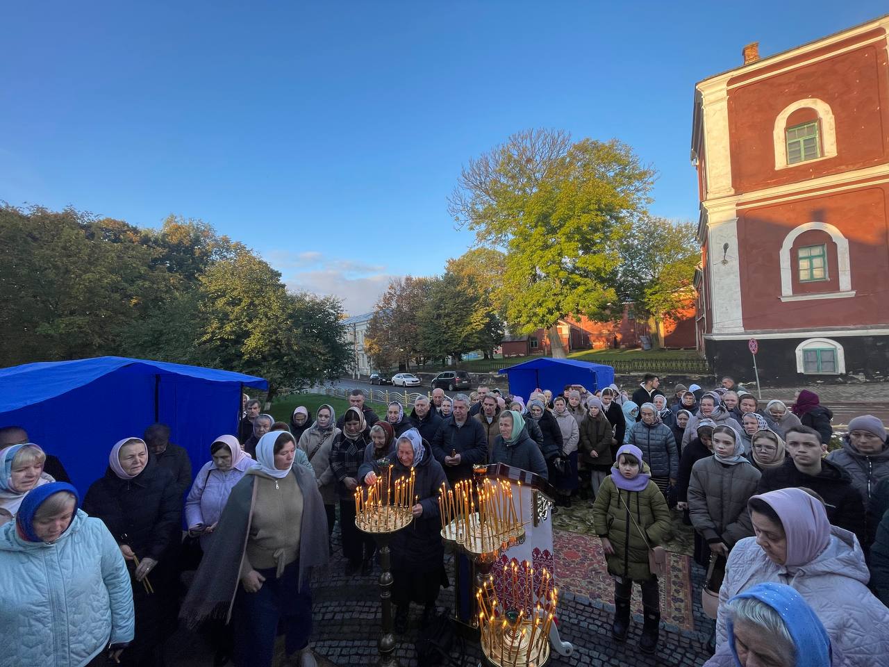 Люди змушені були молитися просто неба, адже собор було незаконно опечатано представниками виконавчої служби.
