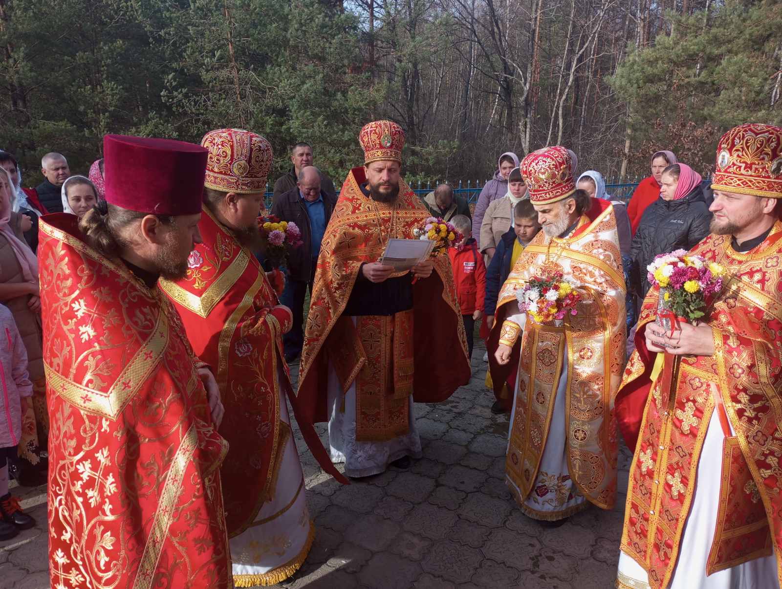 Після завершення Богослужіння відслужили молебень з Хресним ходом навколо храму з читанням Божого слова і окропленням святою водою.