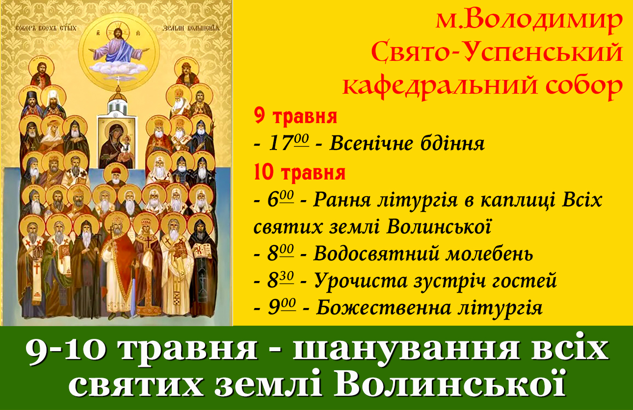 ✅ Запрошуємо на урочисте богослужіння з нагоди вшанування Всіх святих Землі Волинської!