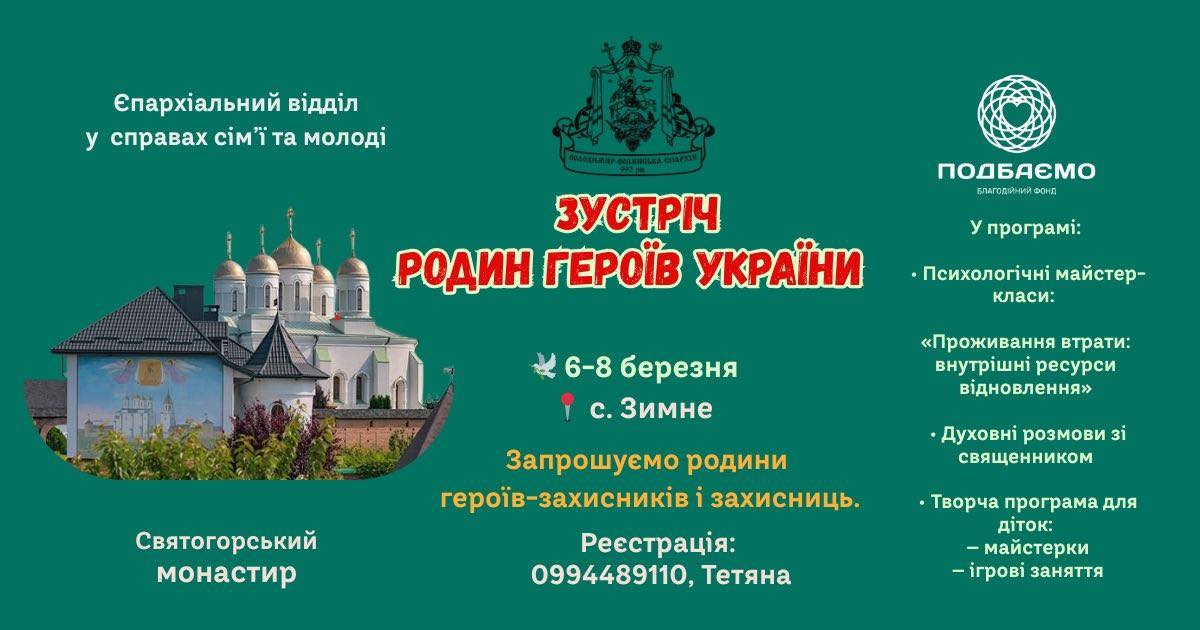 З благословення Керуючого Володимир-Волинською єпархією митрополита Володимира та за підтримки ігумені Стефани, настоятельниці Зимненської Святогірської обителі, відбудеться чергова зустріч родин захисників і захисниць, які віддали життя за Батьківщину.